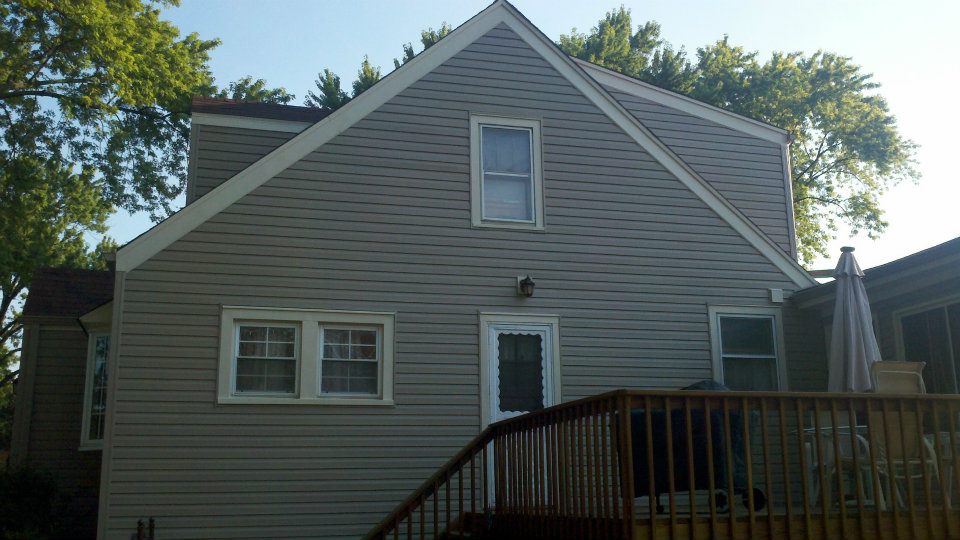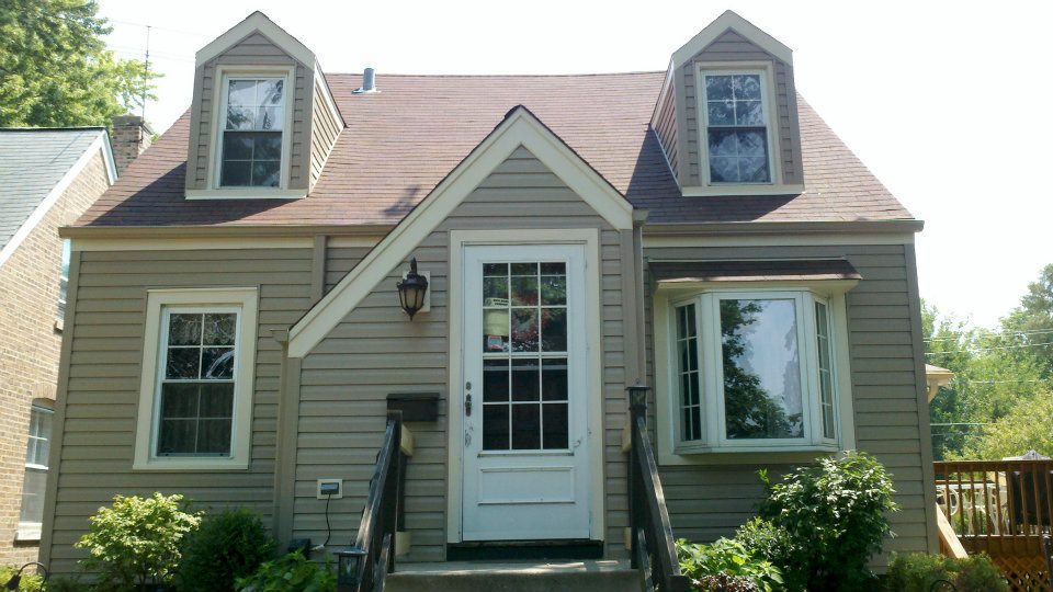 - After Clay siding, gutters, and downspouts Almond gable and window trim